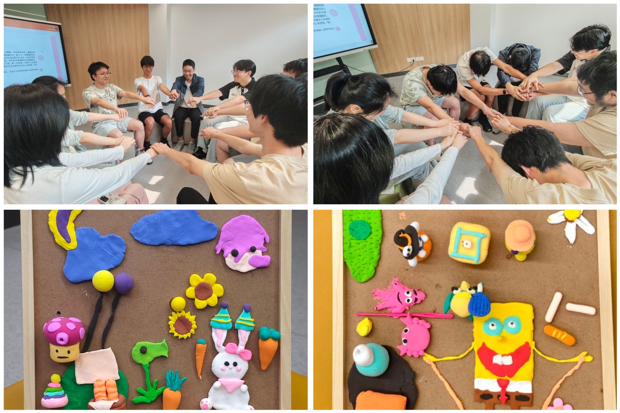 活动以“提升员工人际交往能力,构建和谐校园氛围”为目标,通过“非言语传递”“双向选择”“共创协作”三个环节,引导员工在实践体验中感沟通智慧。“投递空气球”,通过眼神与肢体动作,将“空气球”依次传递给所有组员,打破员工对言语沟通的依赖,发掘非言语沟通的社交价值。“双向选择”,员工根据指令主动与他人握手、放手,循环三次体验人际关系的建立与调整。“共创粘土画”,在团体协作中,成员共同完成一幅粘土画,以具象化形式展现沟通成果。