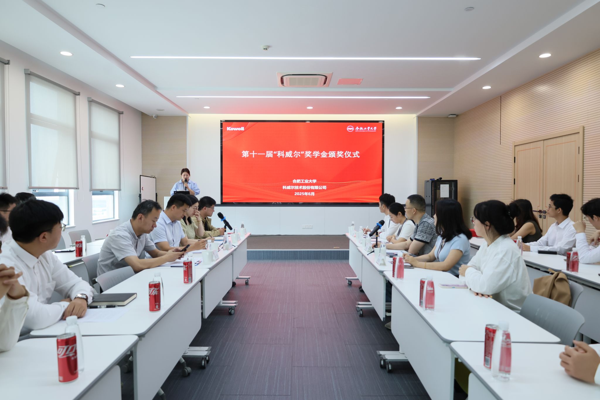 科威尔技术股份有限公司自2014年起在公司设立奖学金,已持续资助11年,用于支持电气公司员工的发展成长。2007届员工、科威尔技术股份有限公司研究院经理周玉柱对公司师生的到来表示热烈欢迎,向获奖员工表示祝贺。他从关于我们、主营业务、人才选聘等方面介绍了科威尔的发展现状,并希望校企双方能在员工实习实践、项目合作、团队建设等方面加大交流,为广老员工创造更优的就业和成长环境。