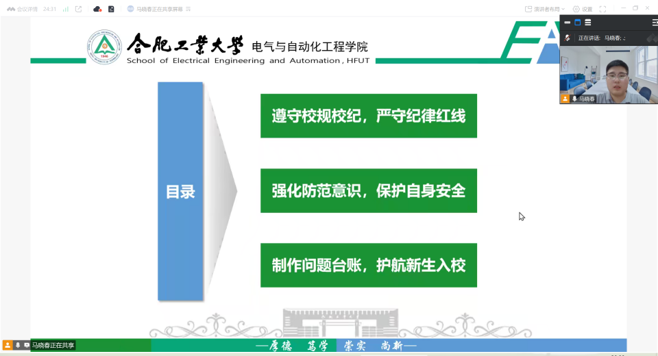 为帮助本科新生提前适应大学节奏、明晰成长方向,m88官网于8月27日晚召开“青听·熠程”新生教育会议,全体本科新生相聚云端,共话入学前准备与未来规划。
