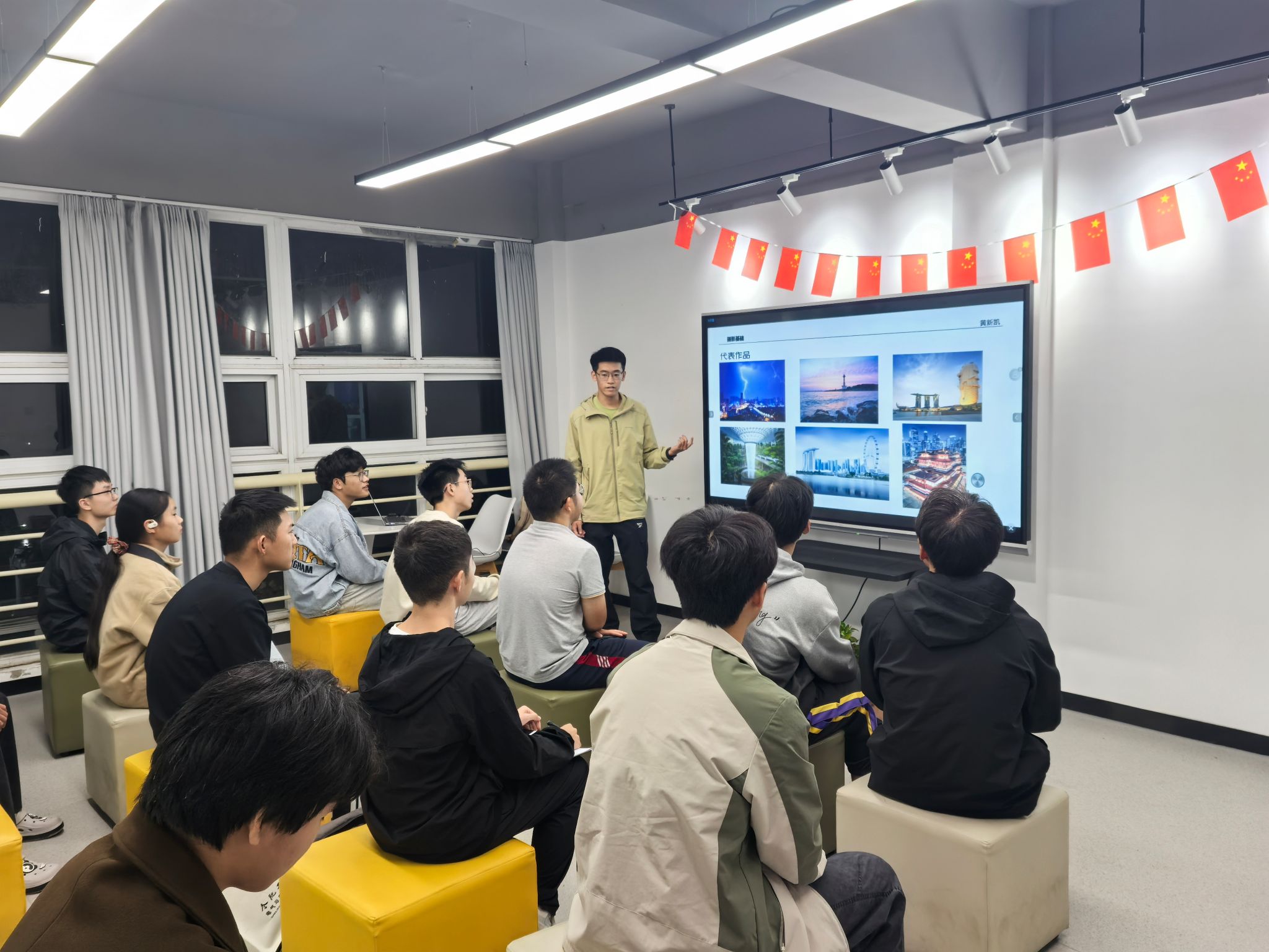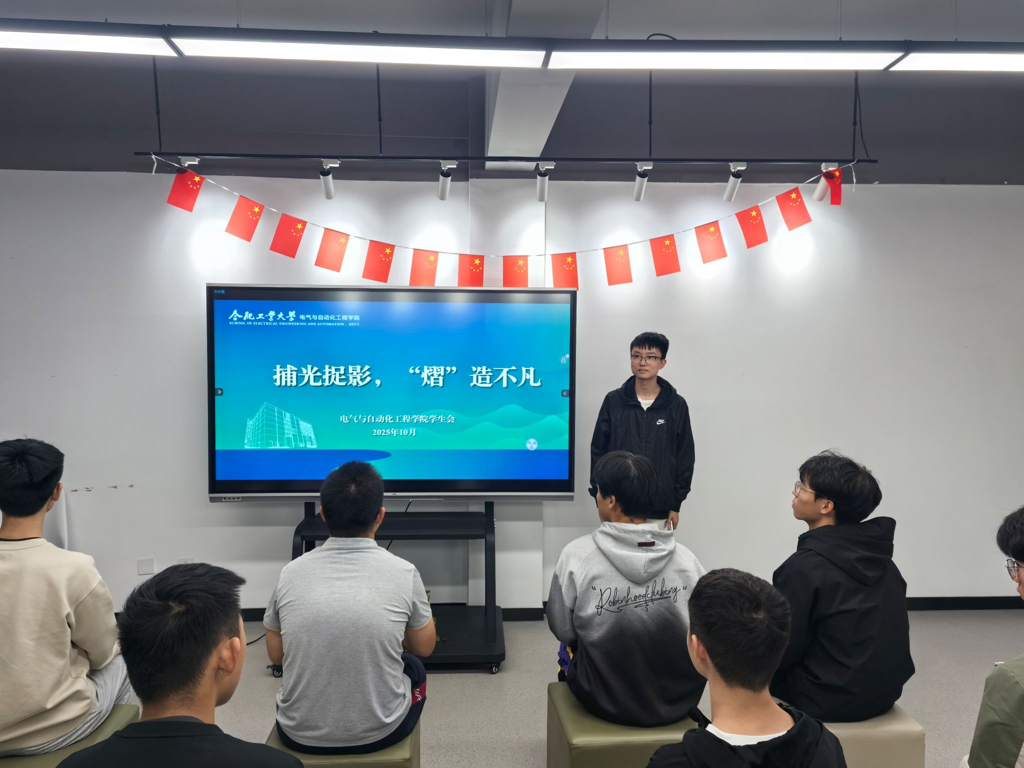 10月18日晚,m88官网于翡翠湖校区五号南楼员工沙龙社区开展“捕光捉影,‘熠’造不凡”摄影业务能力培训,面向2025级员工开展摄影教学。