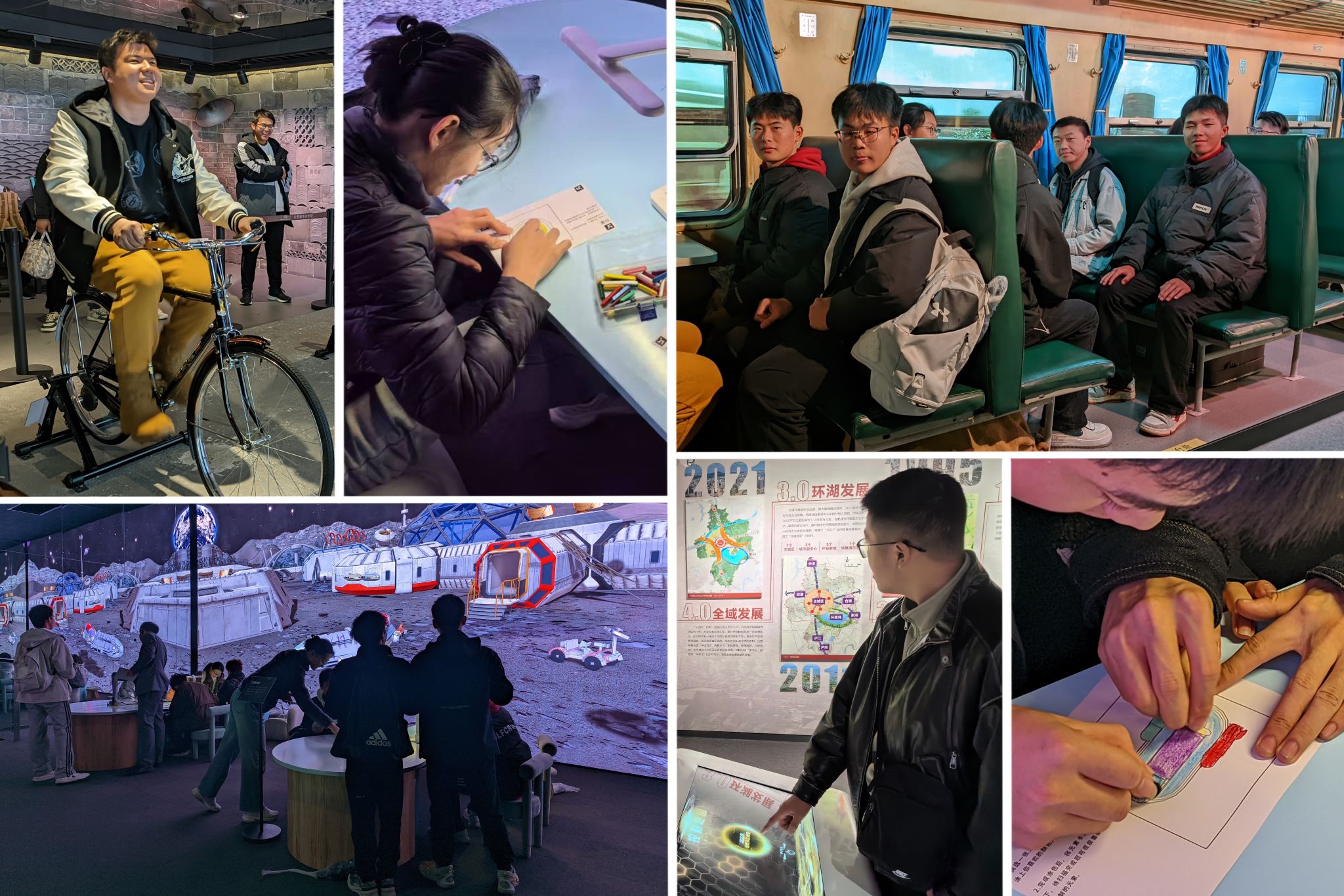 集中学习后,28名营员代表赴合肥城市记忆馆进行参观,既总览了古庐州府的变迁,也领略了如今科技之城的魅力,直观感受到合肥的快速发展。依托场馆内的交互式设施,营员们借助画笔、全息影像和音乐,从绿皮火车到深空探测飞船,从老式公交车到新能源汽车,从传统家电到大科学装置,分组开展了沉浸式体验。