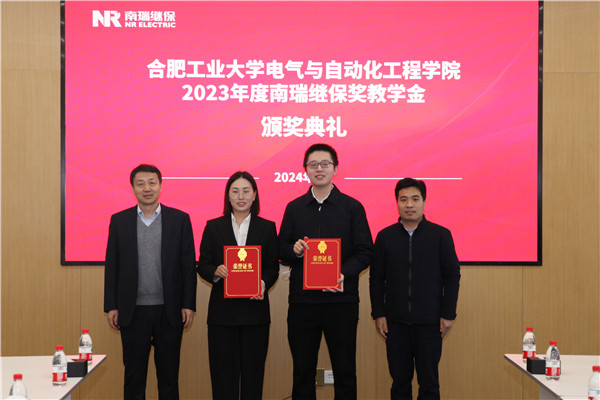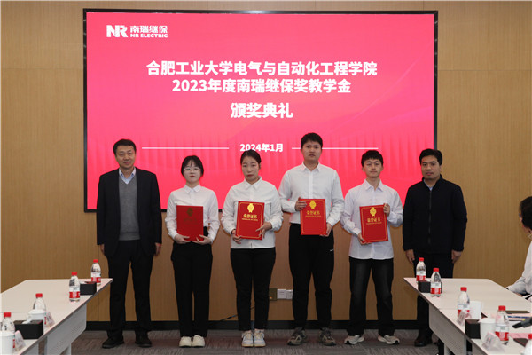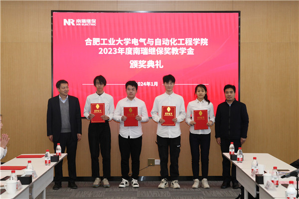 公司研究生辅导员徐佳老师宣读了“m88官方网站登录地址关于表彰2023年度南瑞继保奖学(教)金获得者的决定”。毛仕涛和李丽鹏共同为南瑞继保奖教金的获奖教师代表和获奖的本科生、研究生代表颁奖。