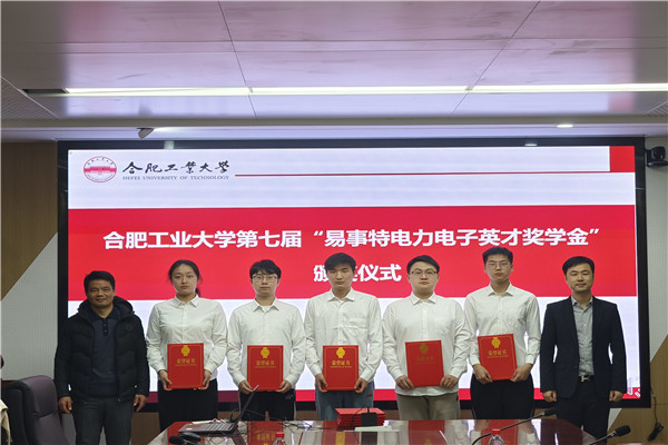 1月5日下午,m88官方网站登录地址第七届“易事特电力电子英才奖学金”颁奖仪式举行。易事特新能源合肥有限公司总经理孙阿欢,易事特集团安徽公司副总经理李涛,易事特集团股份有限公司工程师刘芳红,以及公司相关负责人和获奖员工参加仪式。