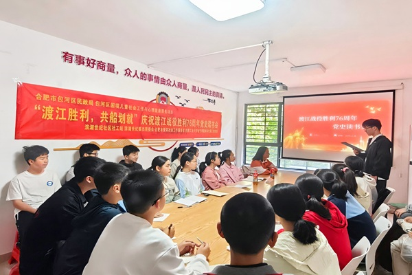 为发挥员工党员先锋模范作用,传承红色基因,厚植青少年爱国情怀,5月11日下午,m88官网本科生第二党支部联合电气工程及其自动化专业2024级3班团支部,赴包河区滨湖世纪社区开展庆祝渡江战役胜利76周年主题党史读书会。